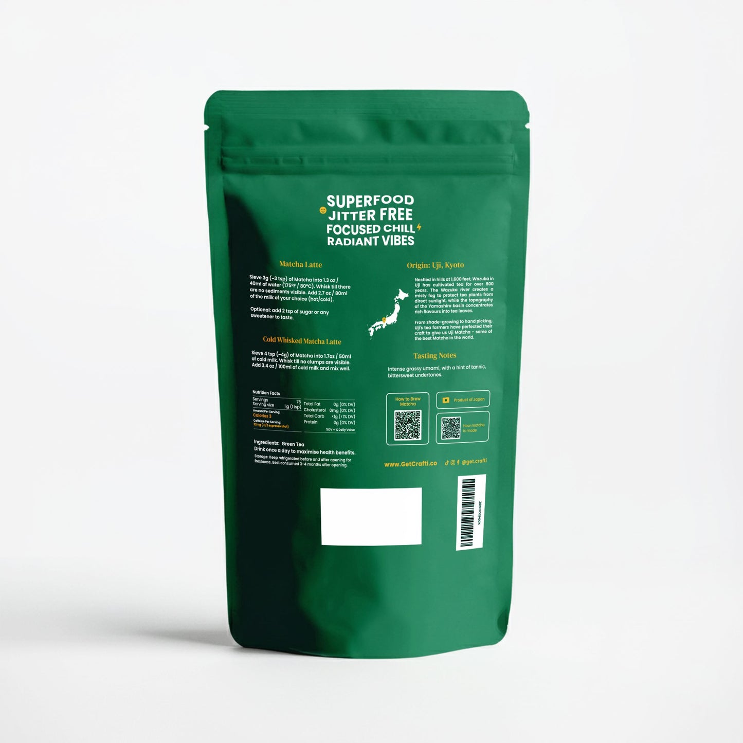 I have been a long time fan of Crafti, since when it first started. The ceremonial grade matcha is fragrant, smooth and not bitter. I love the flavour.