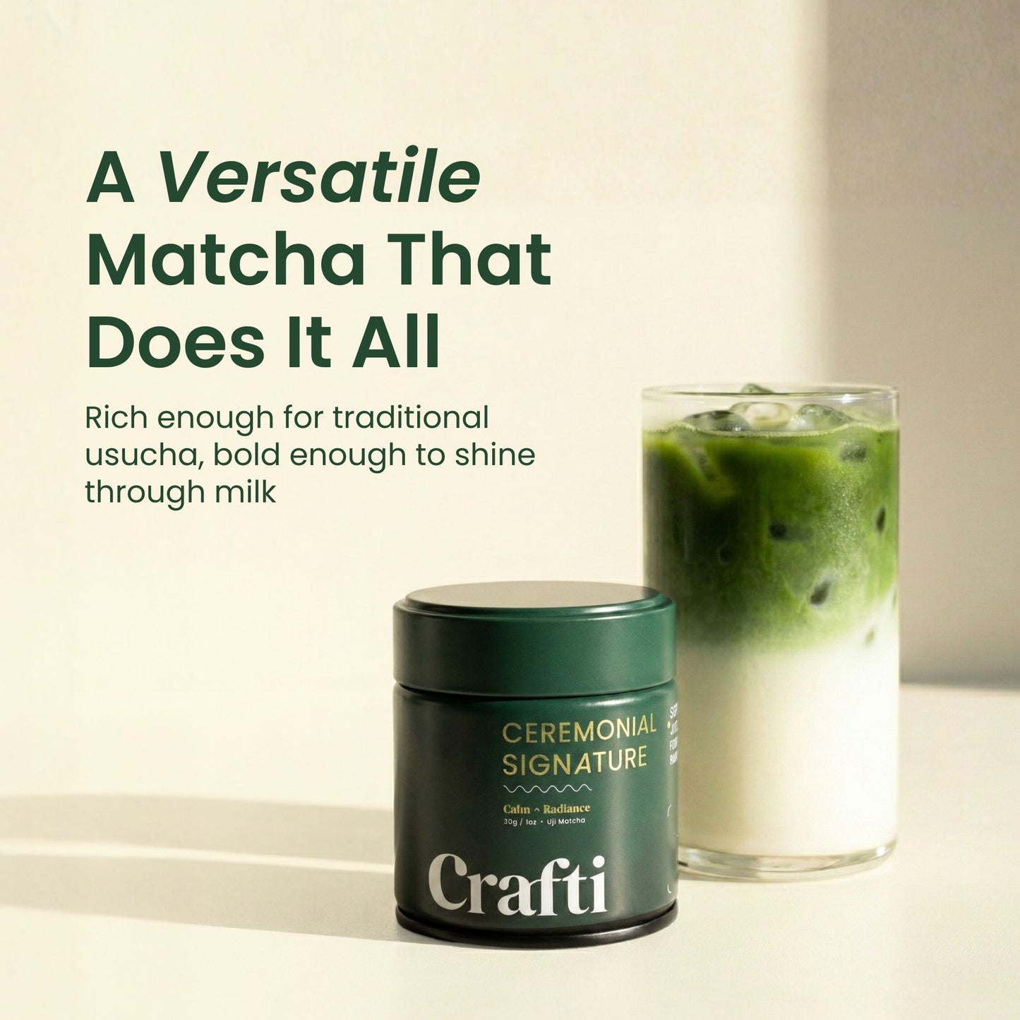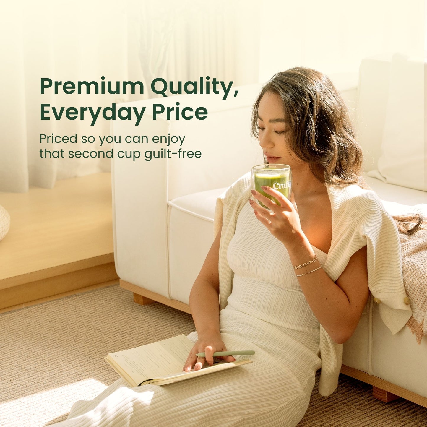 A balanced, first-flush blend from Uji, Kyoto — your everyday ceremonial matcha.
